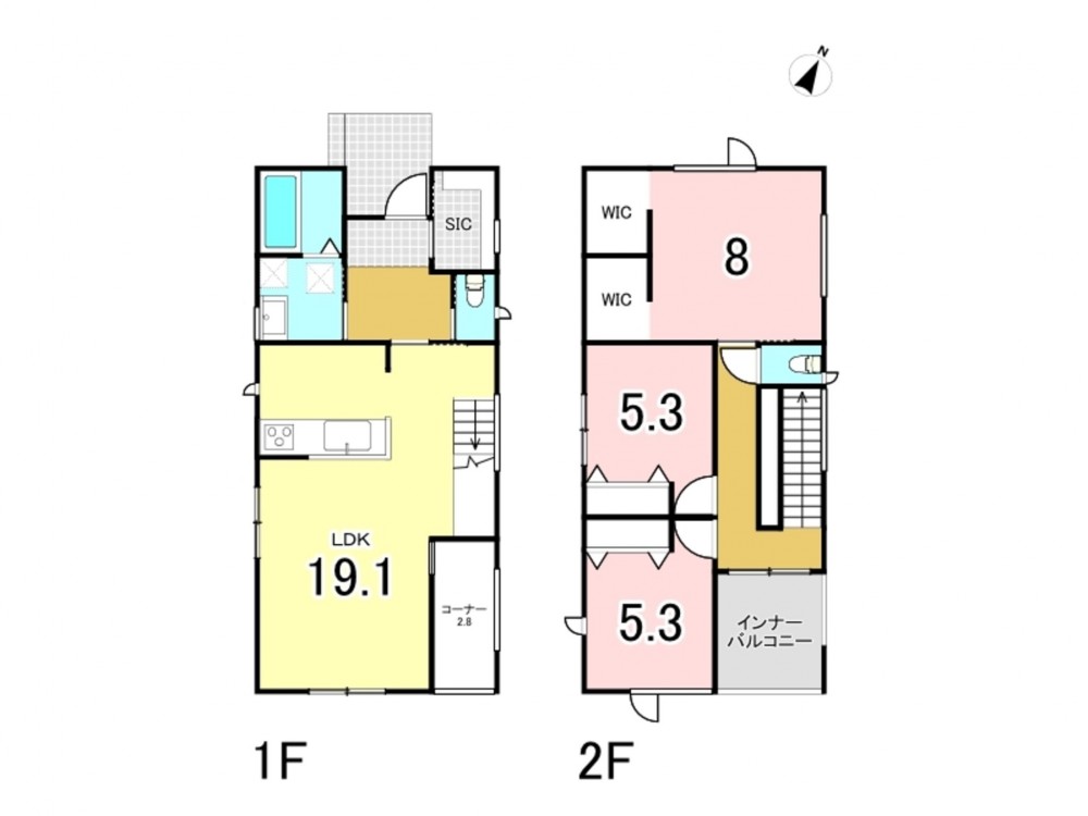 - システムキッチン、カウンターキッチン、食器洗浄乾燥機、オール電化、洗浄便座、浴室乾燥機、床暖房、ウォークインクローゼット、1BOX駐車可、駐車場2台分、トイレ2箇所