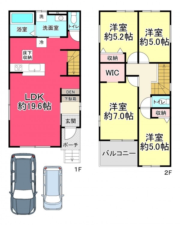普通自動車1台と軽自動車1台駐車可能!南向きで日当たり良好な新築戸建です。