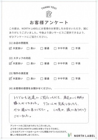 トラブルも迅速にご対応いただき、満足のいく物件の購入ができました。